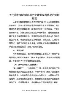 关于庞村镇钢制家具产业转型发展情况的调研报告.docx