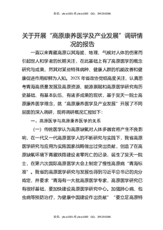 关于开展“高原康养医学及产业发展”调研情况的报告.docx