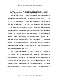 关于对企业转向高质量发展的调研与探索.docx