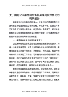 关于国有企业廉情网络监督员作用发挥情况的调研报告.docx