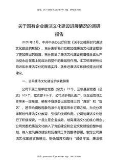 关于国有企业廉洁文化建设进展情况的调研报告.docx