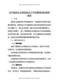 关于国有企业思想政治工作进展情况的调研报告.doc