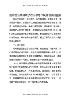 国有企业领导班子政治思想作风建设调研报告.doc