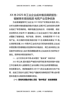 XX市2025年工业企业成本情况调研报告:破解降本增效瓶颈,构筑产业竞争优势.docx