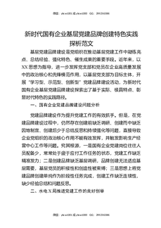 新时代国有企业基层党建品牌创建特色实践论文(集团公司,调研报告).docx