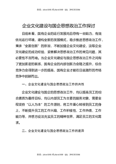 企业文化建设与国企思想政治工作探讨(公司调研报告参考).docx
