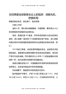 在四季度投资联席会议上的致辞:洞察先机,把握新局.docx