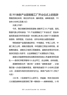 在XX辣条产业园智能工厂开业仪式上的致辞.docx