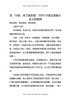 在“宁波,来了就欢喜”2025宁波文旅推介会上的致辞.docx