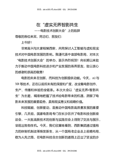 在“虚实无界智影共生——电影技术创新大会”上的致辞.docx