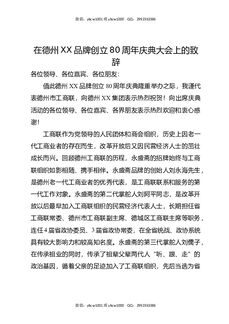 在德州XX品牌创立80周年庆典大会上的致辞.docx