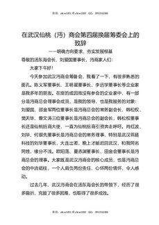 在武汉仙桃(沔)商会第四届换届筹委会上的致辞.docx