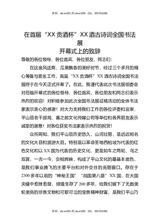在首届“XX贡酒杯”中山酒古诗词全国书法展开幕式上的致辞.docx