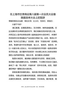 在上海市甘肃商会第八届第一次会员大会暨换届选举大会上的致辞.docx