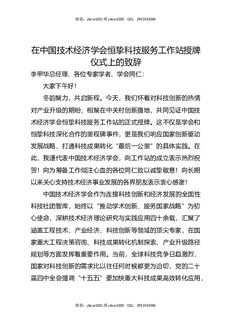 在中国技术经济学会恒挚科技服务工作站授牌仪式上的致辞.docx