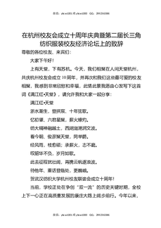 在杭州校友会成立十周年庆典暨第二届长三角纺织服装校友经济论坛上的致辞.docx