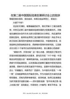 在第二届中国国际陆港发展研讨会上的致辞.docx
