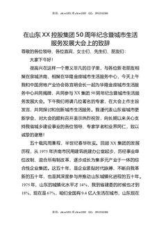 在山东XX控股集团50周年纪念暨城市生活服务发展大会上的致辞.docx