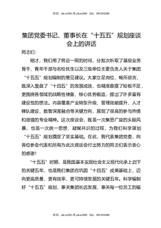集团党委书记、董事长在“十五五”规划座谈会上的讲话.docx