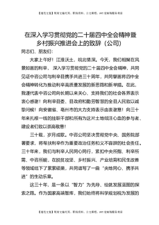 深入学习贯彻党的二十届四中全会精神暨乡村振兴推进会上的致辞(公司).docx