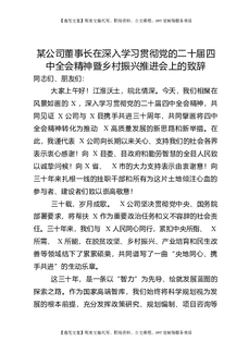 某公司董事长在深入学习贯彻党的二十届四中全会精神暨乡村振兴推进会上的致辞.docx