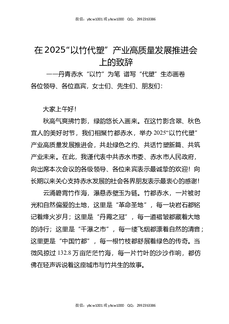 在2025“以竹代塑”产业高质量发展推进会上的致辞.docx