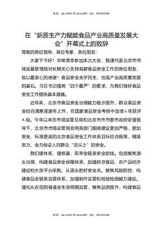 北京市市场监管局在“新质生产力赋能食品产业高质量发展大会”开幕式上的致辞.docx