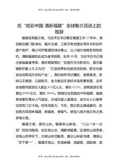 在“炫彩中国,清新福建”全球推介活动上的致辞.docx