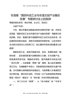 在首届“国防科技工业与非遗文创产业融合发展”专题研讨会上的致辞.docx