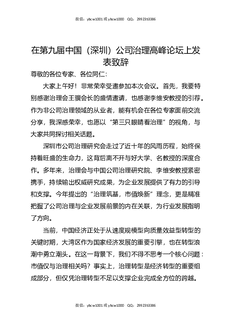 在第九届中国(深圳)公司治理高峰论坛上发表致辞.docx