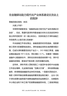 在金融驿站助力现代化产业体系建设交流会上的致辞.docx