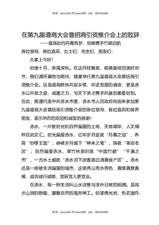 在第九届遵商大会暨招商引资推介会上的致辞.docx