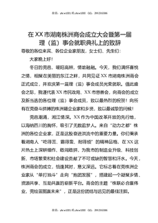 在XX市湖南株洲商会成立大会暨第一届理(监)事会就职典礼上的致辞.docx
