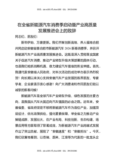 在全省新能源汽车消费季启动暨产业高质量发展推进会上的致辞.docx