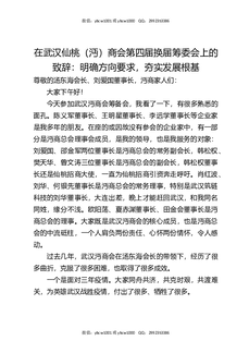 在武汉仙桃(沔)商会第四届换届筹委会上的致辞.docx