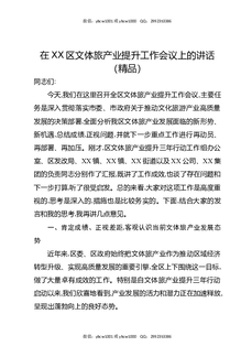 在XX区文体旅产业提升工作会议上的讲话(精品).docx