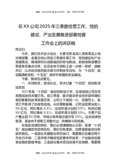 在XX公司2025年三季度经营工作、党的建设、产业发展推进部署检查工作会上的讲话稿.docx