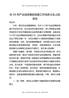 在XX市产业投资集团组建工作动员大会上的讲话.docx