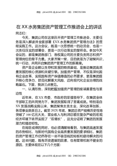 在XX水务集团资产管理工作推进会上的讲话.docx