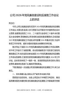 公司2026年党风廉政建设工作会上的讲话.docx