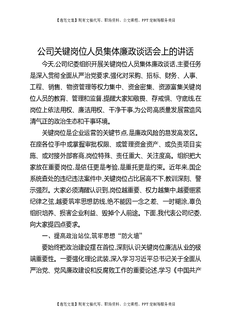 公司关键岗位人员集体廉政谈话会上的讲话.docx