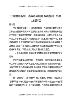 公司酒驾醉驾、违规吃喝问题专项整治工作会上的讲话.docx