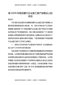 镇2026年烟花爆竹企业复工复产部署会上的讲话.docx