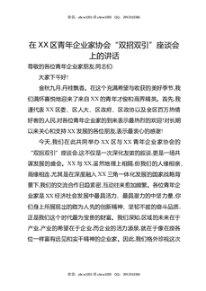 在XX区青年企业家协会“双招双引”座谈会上的讲话.docx
