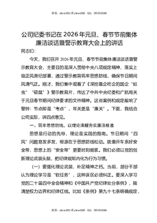 公司纪委书记在2026年元旦,春节节前集体廉洁谈话暨警示教育大会上的讲话.docx