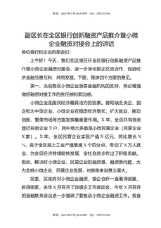 副区长在全区银行创新融资产品推介暨小微企业融资对接会上的讲话.docx