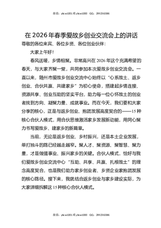 在2026年春季爱故乡创业交流会上的讲话.docx
