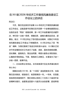 在XX镇2026年经济工作暨党风廉政建设工作会议上的讲话.docx