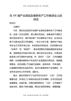 在XX镇产业谋划及春耕生产工作推进会上的讲话.docx