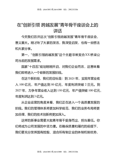 在创新引领,跨越发展青年骨干座谈会上的讲话.docx